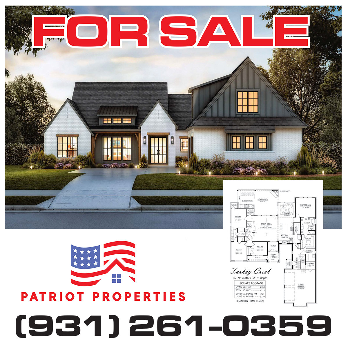 Patriot Properties is a local veteran owned construction company in Cookeville, TN. We specialize in building custom quality homes that embody quality, elegance, and meticulous attention to detail. Our passion lies in creating unique living spaces that not only meet but exceed our home buyers expectations. Each home is a blend of classic craftsmanship and modern functionality, reflecting our commitment to excellence and timeless design. With a focus on the highest construction standards, we ensure that every project is a seamless journey from concept to completion, delivering homes with character, comfort, and beauty.